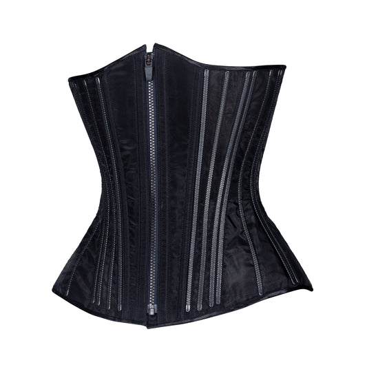 Black Satin Cupped Corset, Gemini Silhouette, Regular