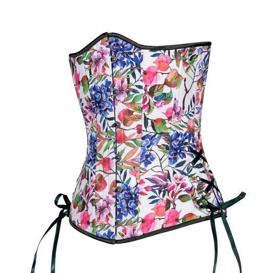 Vintage Flowers in Bloom Corset, Slim Silhouette, Long