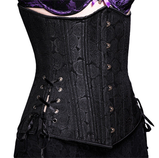 Black Floral Brocade Corset, Hourglass Silhouette, Regular