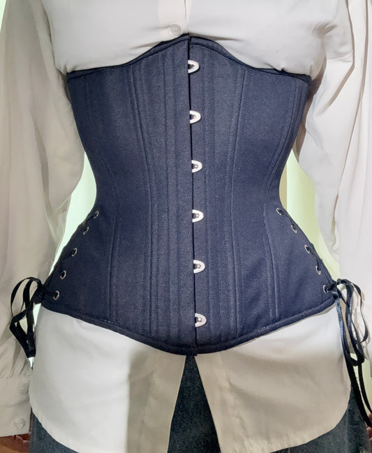 Dark Wash Denim Corset, Hourglass Silhouette, Long