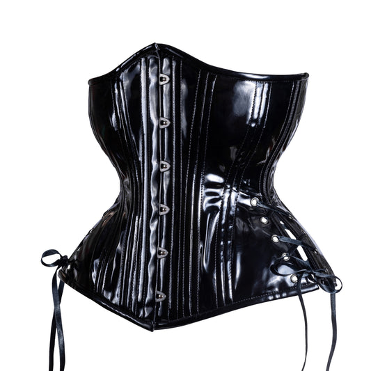 Black Vinyl Corset, Hourglass Silhouette, Long