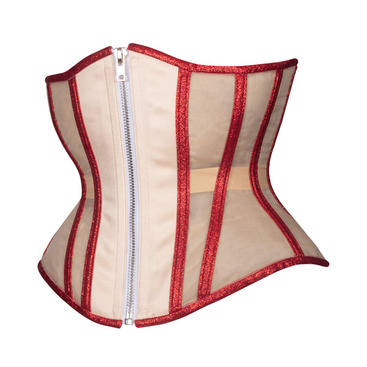 Ruby Beige Mesh Corset, Hourglass Silhouette, Regular