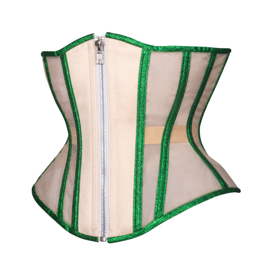 Emerald Beige Mesh Corset, Hourglass Silhouette, Regular