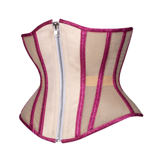Pink Beige Mesh Corset, Hourglass Silhouette, Regular