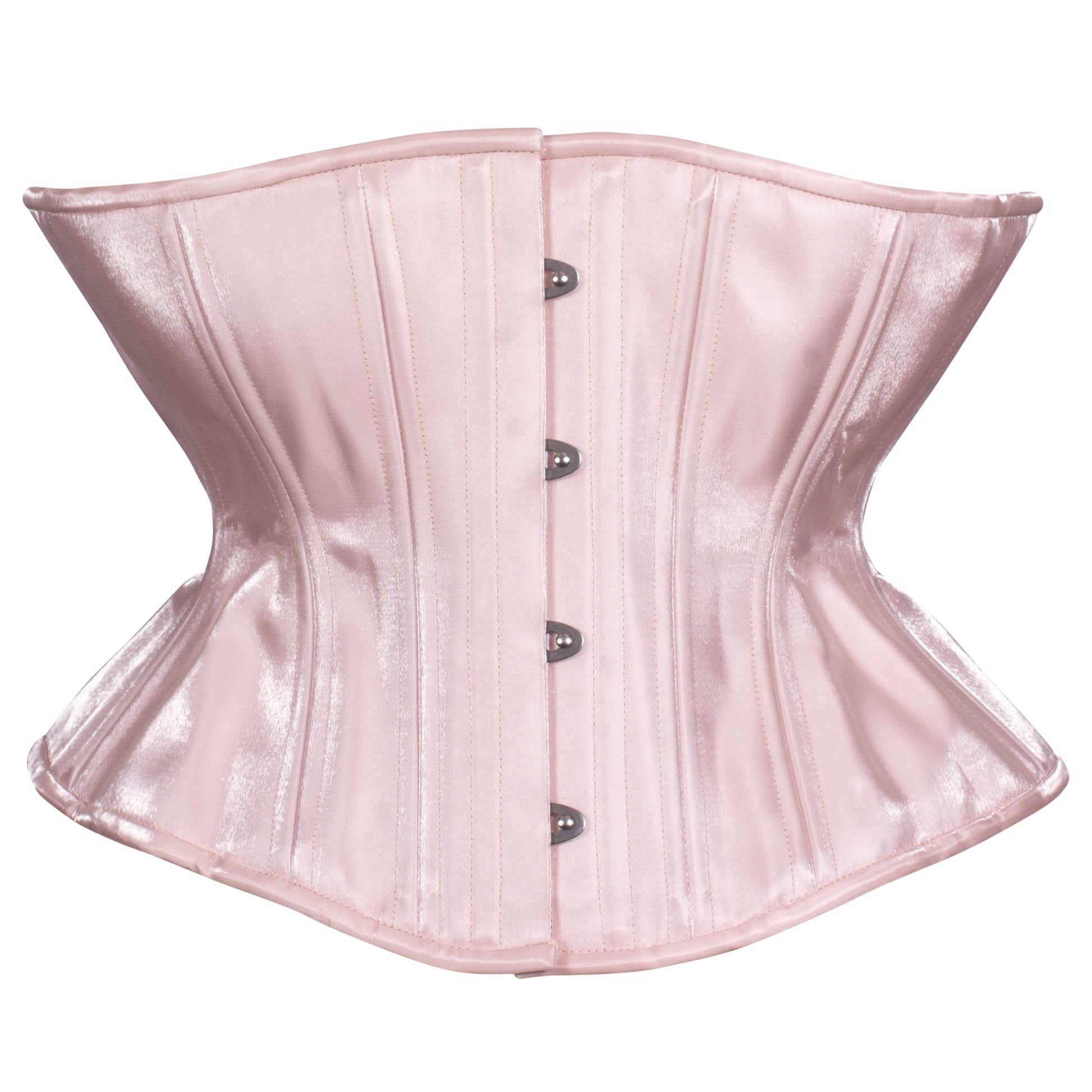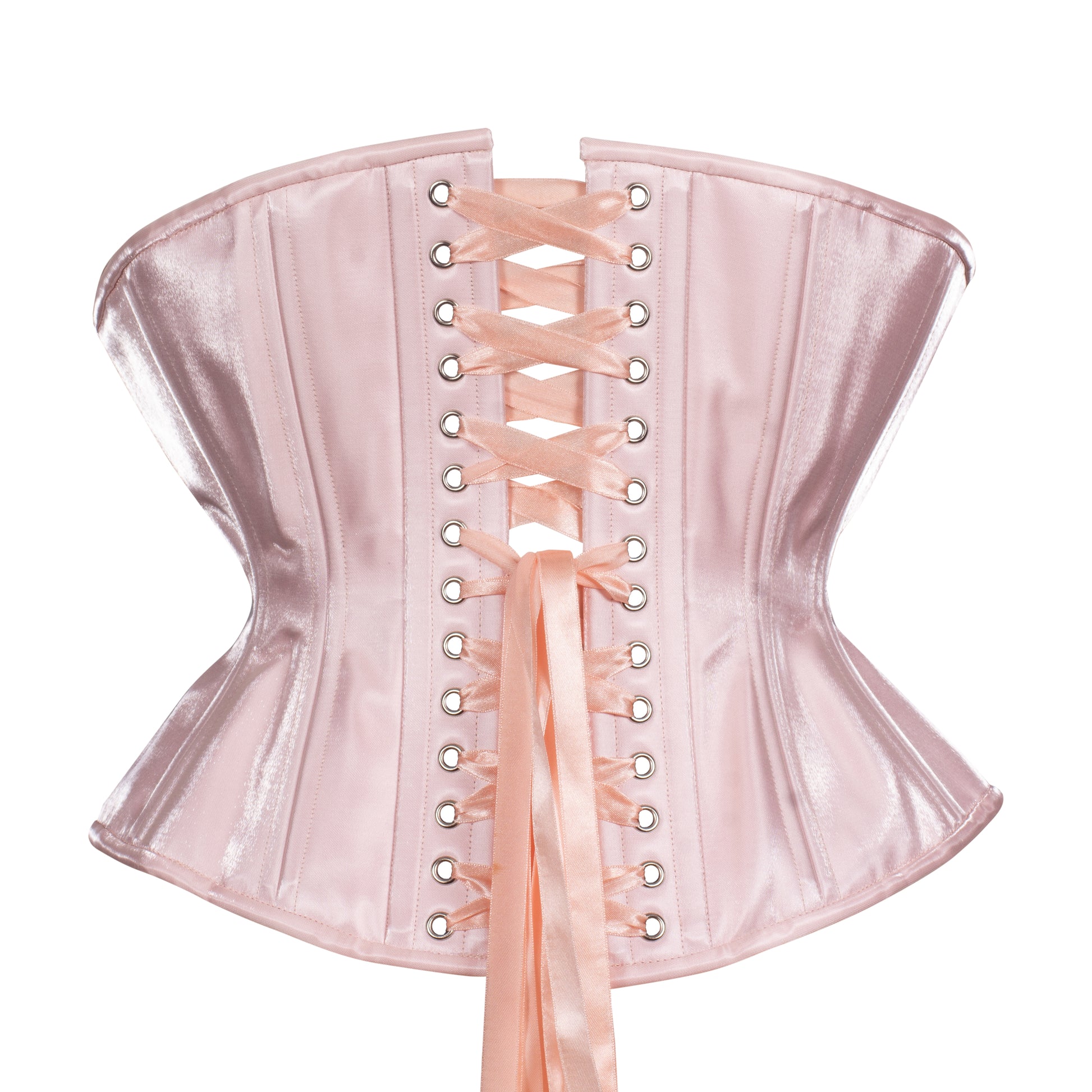 Crafted from glossy crystal satin with a soft, wet-look sheen, this corset glows like silk under the light. The delicate blush pink evokes the elegance of satin pointe shoes and the dreamy haze of a spring morning. Photos cannot capture its true charm—you have to see it sparkle in person!