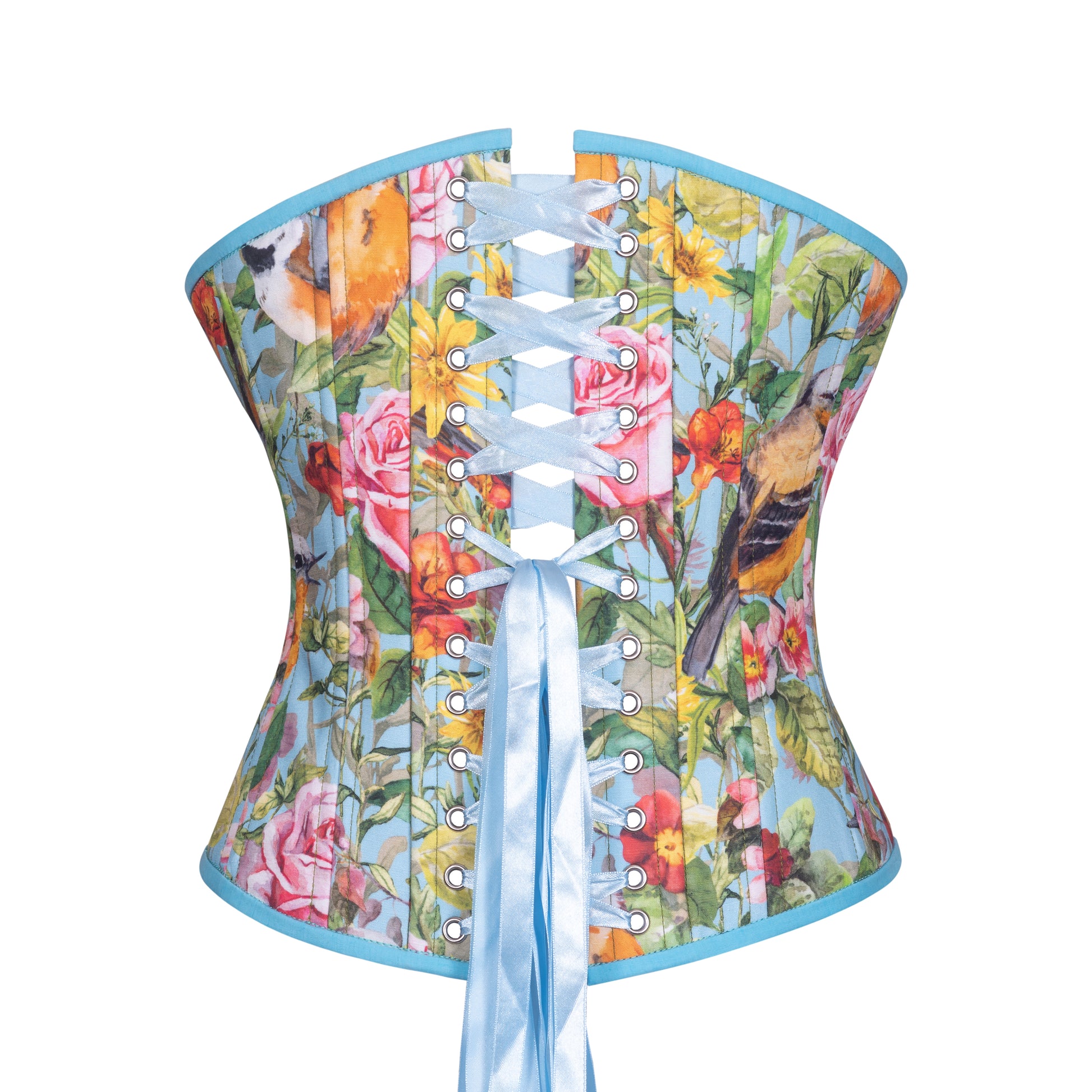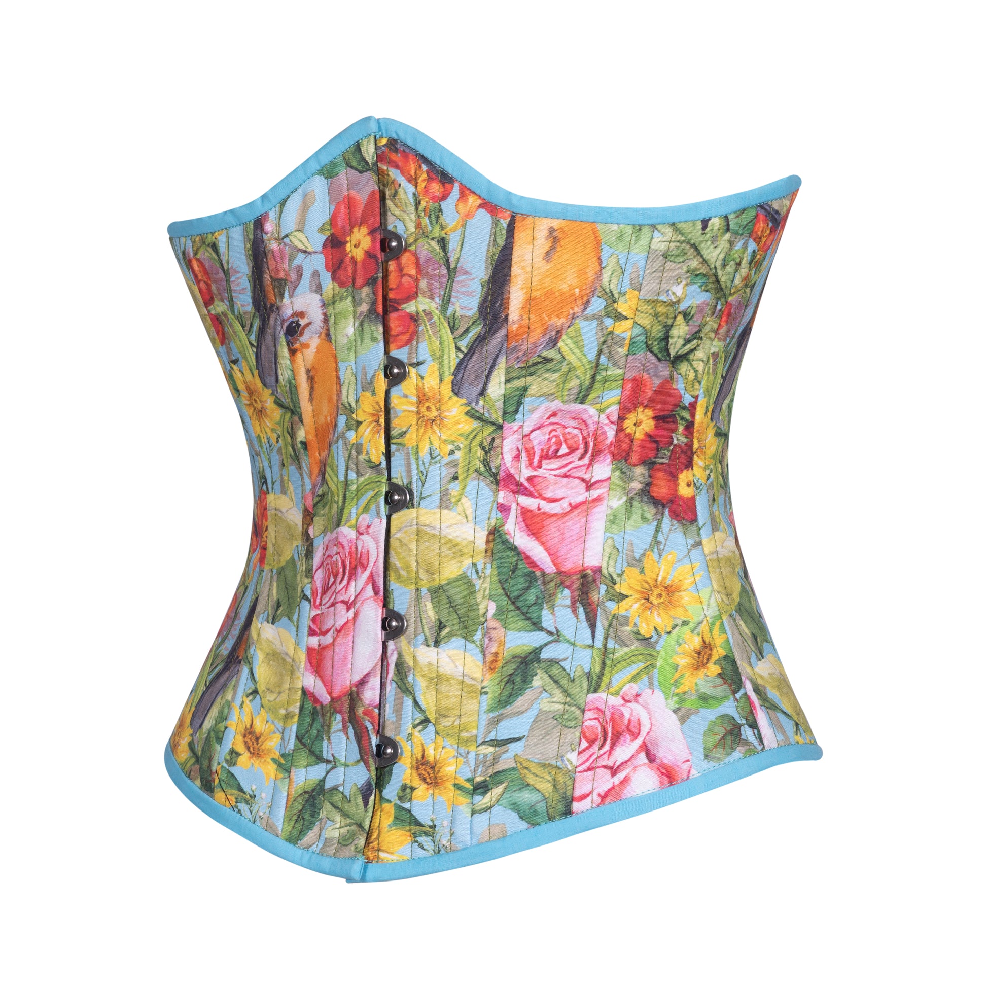 Introducing the Verdant Robins Novice corset, a delightful embodiment of springtime hues by Verdant Robins. Crafted from 100% cotton, this multicolored corset features a vibrant palette of blue, yellow, orange, and pink, reminiscent of blossoming flowers and sunny days. Its intricate design captures the essence of youthful energy and vitality. Complemented by matching blue laces, this corset not only accentuates your silhouette but also offers a charming touch to any ensemble. Embrace the season with the Verdant Robins Novice corset, where style meets springtime bliss.