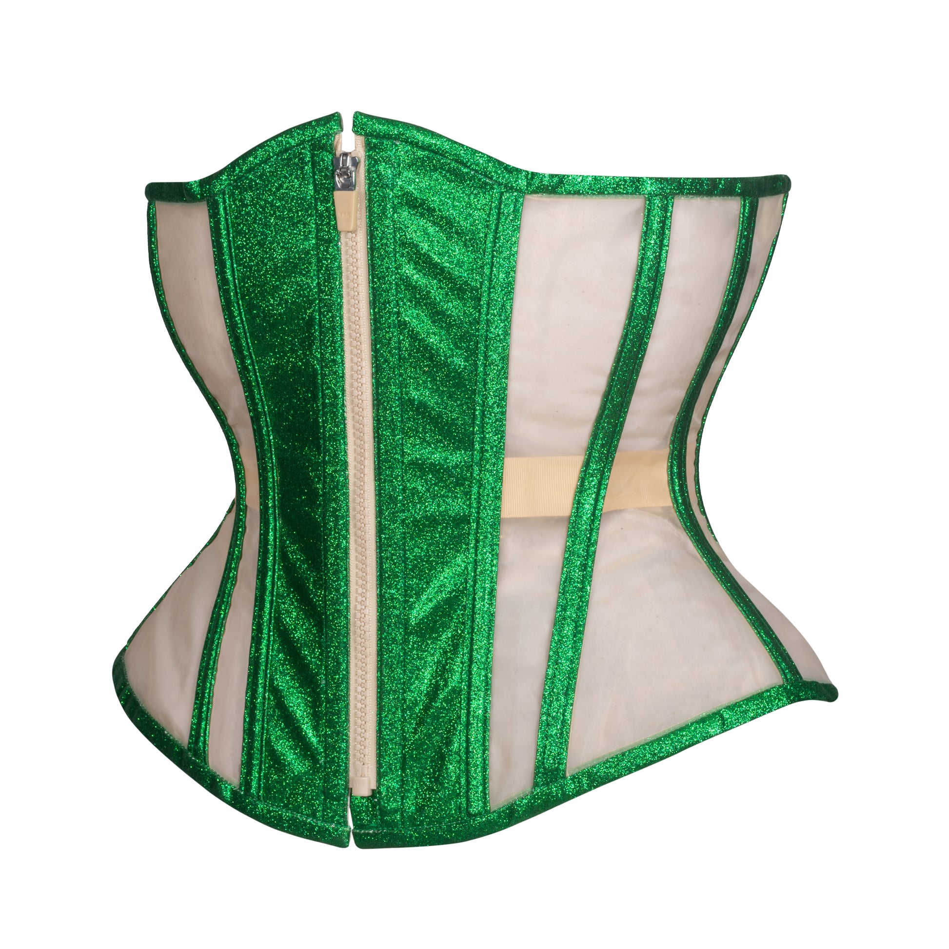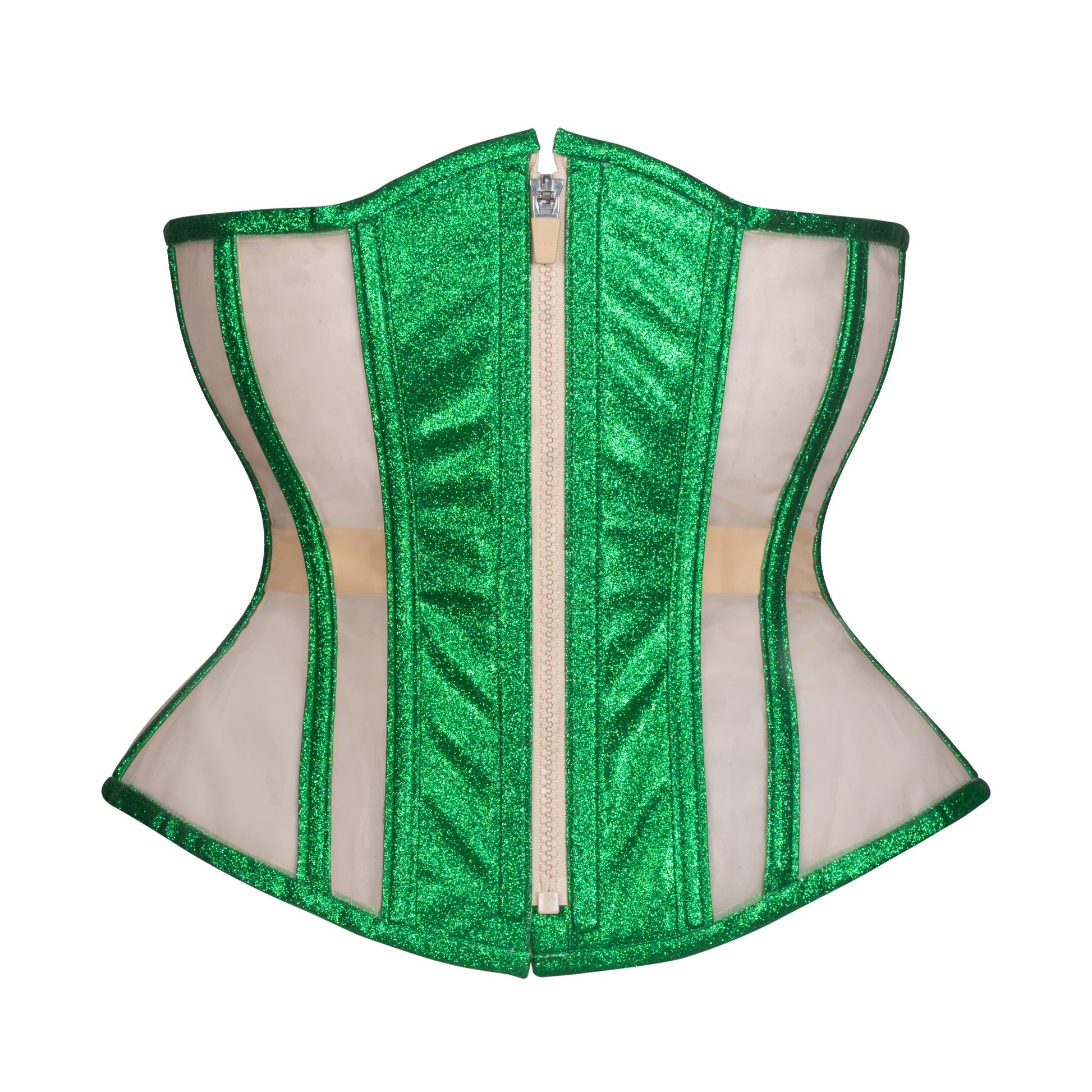Emerald Glitter Mesh Corset, Hourglass Silhouette, Regular