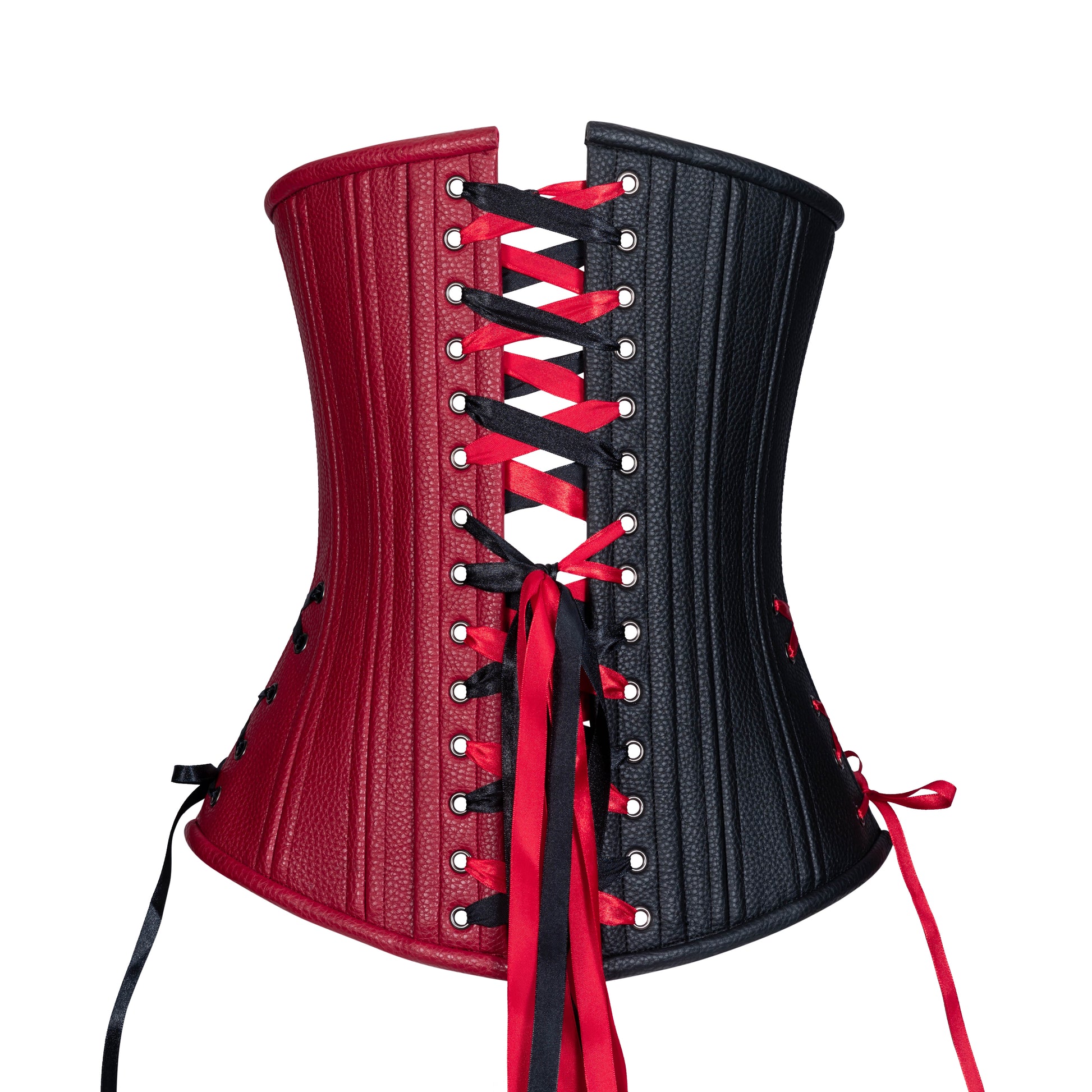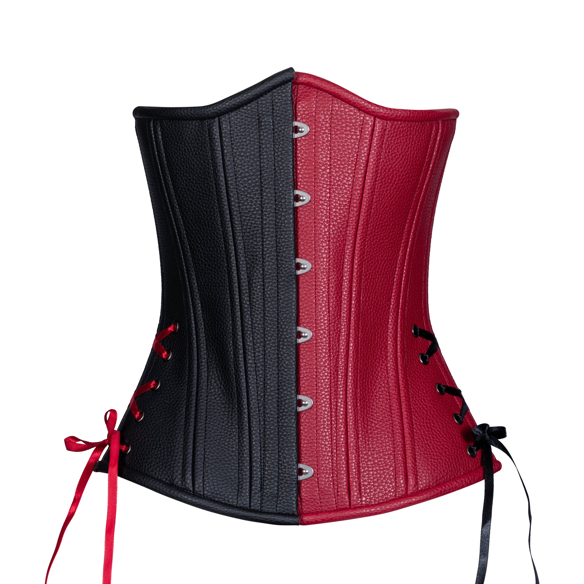 Join our suicide squad with the Harlequin Ruckus corsets inspired by DC's Harley Quinn. This masterpiece corset is delicately made of synthetic red and black leather with a final touch of contrasting hip ties and lacings. Doesn't matter if you're going for Harley Quinn the super-villain or Harley Quinn the anti-hero, this corset can be worked into your cosplay or your street clothes or both!