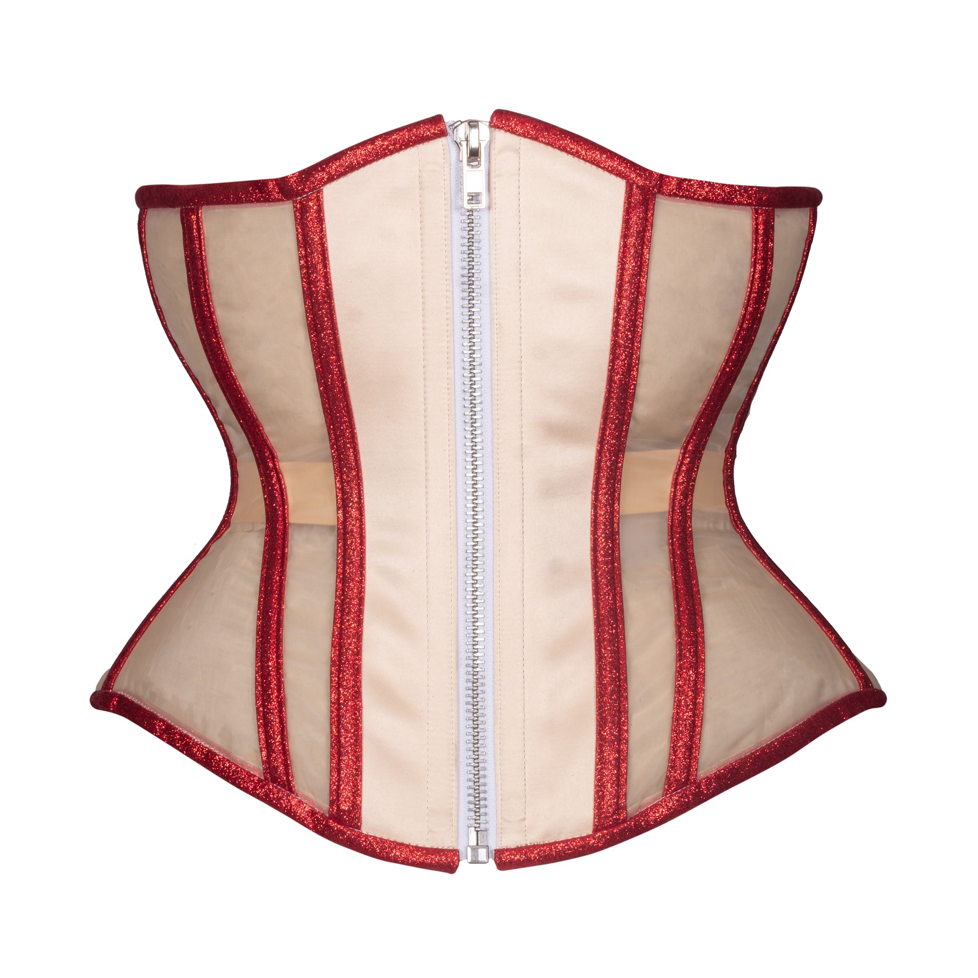 Ruby Beige Mesh Corset, Hourglass Silhouette, Regular